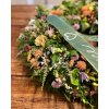Smuteční věnec o průměru cca 50 cm je tvořen ze 2/3 ze zeleného italského ruscusu, z 1/3 květinovou přízdobou. Květiny jsou vypichované do aranžovací hmoty, vydrží dlouho čerstvé. Výběr květin a jejich barevnost po domluvě s vámi. V ceně také černá látková stuha, na kterou Vám nabízíme i možnost ručně psaného vzkazu zlatým fixem. Ideálně k vyzvednutí den před obřadem. Věnec můžeme také zaslat na Vámi určené místo - po Praze zdarma. Objednávka minimálně den předem.